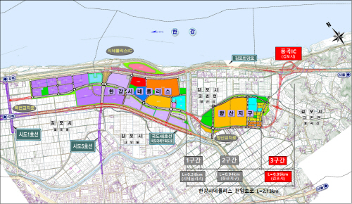 시에 따르면 한강시네폴리스 진입도로 풍곡IC 공사는 사업 주체에 따라 총 3개 구간으로 나뉘어 진행되고 있다.