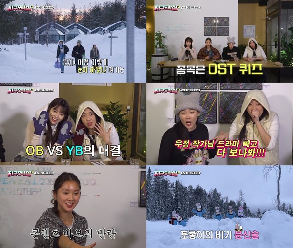현지 한식당에서 진행되는 저녁 게임 OST 퀴즈는 ‘언니즈’ 이은지와 미미, ‘동생즈’ 이영지, 안유진이 팀을 이뤄 OB와 YB의 대결이 성사, 기대감을 높이고 있다. 승부욕 붙은 ‘콘바(콘텐츠 바보)’ 미미의 의외의 활약도 확인할 수 있다.