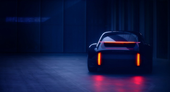 새로운 EV 콘셉트카는 공기역학적 디자인에서 영감을 받아 앞쪽에서 뒤쪽까지 풍부하게 흐르는 듯한 우아한 곡선의 실루엣이 특징으로, 통합 스포일러와 픽셀 램프 후미등으로 강조된 후면부는 마치 공기저항을 줄이기 위해 매끈하게 빠진 항공기의 후미(後尾)처럼 속도감을 자아낸다.