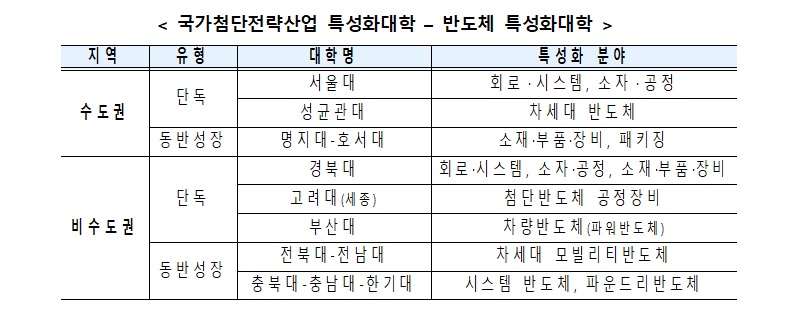 한편, 이번에 지정된 8곳의 국가첨단전략산업 특성화대학에는 ▲융복합 교육과정 설계 ▲우수교원 확보 ▲실습 및 교육환경 구축 등을 위해 올해 총 540억 원이 지원된다.