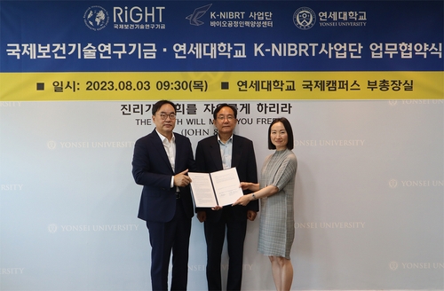 연세대학교 융합과학기술원 K-NIBRT사업단이 지난 3일 국제보건기술연구기금(Research Investment for Global Health Technology Foundation, 이하 라이트재단)과 세계 공중보건 증진을 목표로 mRNA 전문 인력 양성을 위한 업무협약(MOU)을 체결했다.