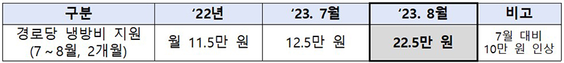 경로당 냉방비 지원 현황