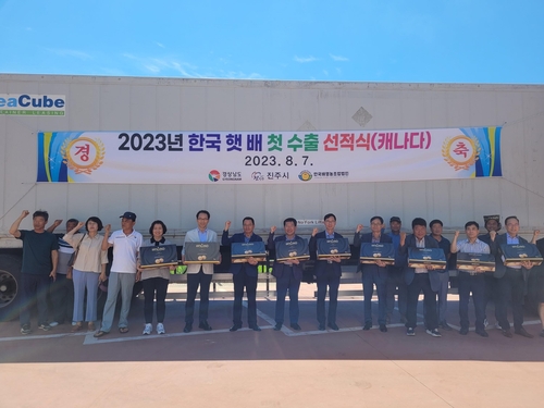 진주시는 7일 농산물 수출단지 중 하나인 문산읍 소재 한국배영농조합법인에서 생산한 햇배를 캐나다 밴쿠버로 수출하기 위해 첫 선적했다고 밝혔다.