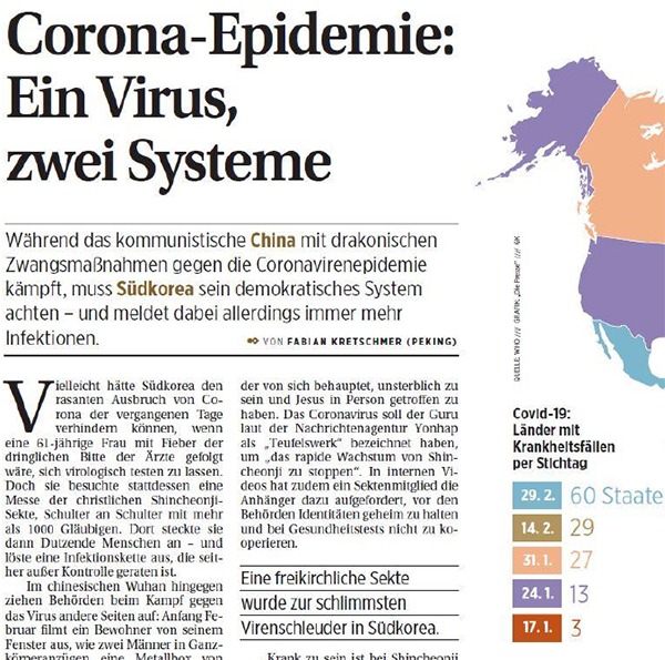 참고로 코로나19와 관련한 한국의 대처를 소개한 독일 언론의 주요 보도 사례를 모아본다.