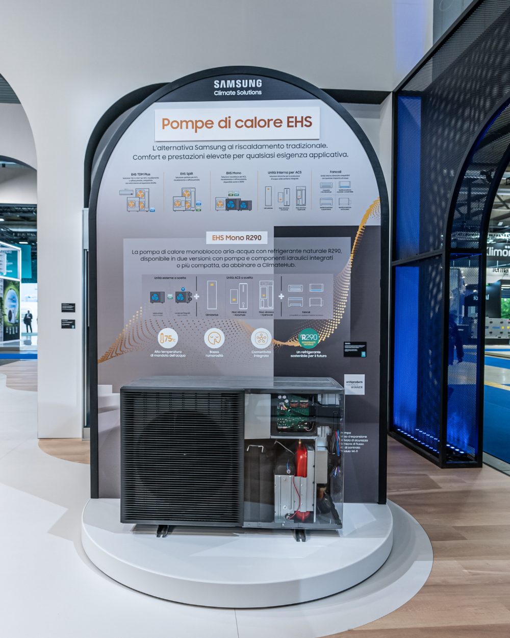 삼성전자는 EHS 하이드로 실내기 ‘클라이밋허브(ClimateHub)’를 이번 전시회에서 처음 공개했다.