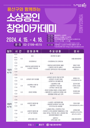 박희영 용산구청장은 "다양한 주제로 준비한 이번 교육으로 성공적인 창업에 도움되시길 바란다"며 "앞으로도 예비 창업자와 소상공인을 지원할 다양한 사업을 펼쳐가겠다"고 전했다.