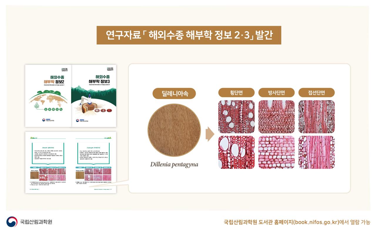 이에 국립산림과학원은 『해외수종 해부학 정보』를 산림과학속보로 연속 발간하고, 적극행정의 일환으로 국립산림과학원 도서관 홈페이지(https://book.nifos.go.kr)에 대국민 서비스로 공개하였다.