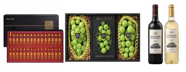 15브릭스 샘플링 당도선별 과정을 거친 ‘샤인머스켓 3입 세트’를 정상가 71,400원에서 행사카드 결제 시 30% 할인된 49,980원에, 샤인머스켓(2송이), 애플망고(3개), 사과(3개), 배(2개) 등 여러가지 인기 과일로 구성된 ‘피코크 샤인머스켓 혼합세트’를 행사카드 결제 시, 정상가 159,900원에서 30% 할인된 111,930원에 판매한다.