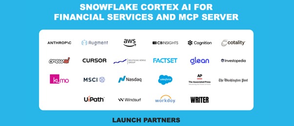 스노우플레이크는 금융을 포함해 모든 산업군에서 기업들이 활용할 수 있는 관리형 ‘MCP 서버(Model Context Protocol Server)’도 퍼블릭 프리뷰로 새롭게 제공한다. MCP 서버는 기업이 자사 내부 전용 독점 데이터와 파트너사의 서드파티 데이터를 분리해 스노우플레이크 내에서 안전하게 활용하고, 앤트로픽(Anthropic), 크루AI(CrewAI), 세일즈포스 에이전트포스 등 애플리케이션 및 에이전트 플랫폼과의 연결을 통해 컨텍스트가 풍부한 AI 에이전트와 애플리케이션을 구축할 수 있도록 지원한다.