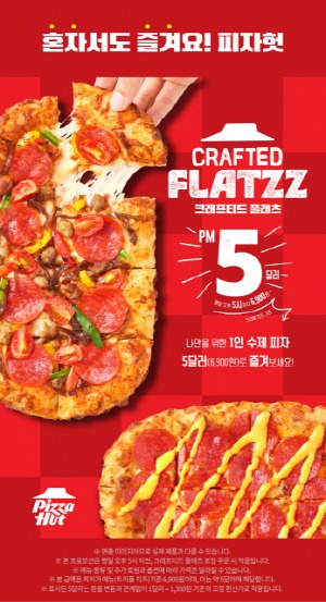 한국피자헛이 1인 가구 증가와 배달·포장 중심의 소비 트렌드에 맞춰 새로운 1인 피자 카테고리 ‘Crafted Flatzz(크래프티드 플래츠)’를 공식 출시하고, 이를 기념해 파격적인 ‘5!타임세일’ 프로모션을 선보이며 1인 고객 공략에 나선다.