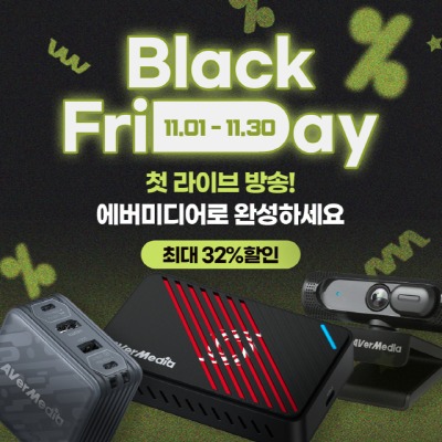 글로벌 스트리밍 솔루션 브랜드 에버미디어(AVerMedia)가 11월 한 달간 ‘블랙프라이데이 특가 이벤트’를 진행한다고 5일 밝혔다. 이번 기획전은 캡처보드, 웹캠, 마이크, 스피커폰 등 전 제품 라인업을 최대 32% 할인된 가격으로 선보이는 연중 최대 규모의 이벤트다.
