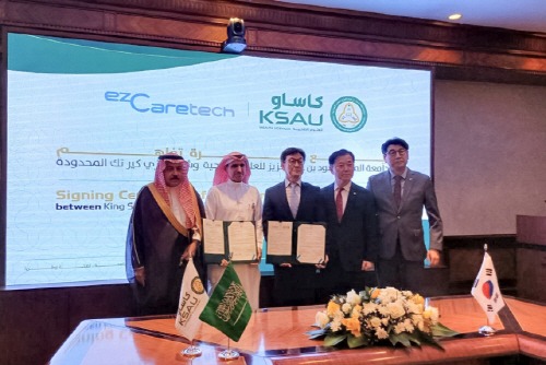 국내 1위 디지털 헬스케어 전문기업인 이지케어텍이 지난 3일(월) 사우디아라비아 Top5 수준의 킹 사우드 빈 압둘아지즈 보건과학대학(KSAU-HS)과 양해각서(MOU)를 체결했다. 국내 디지털 헬스케어 기업이 사우디 의과대학과 MOU를 체결한 건 이번이 처음이다.
