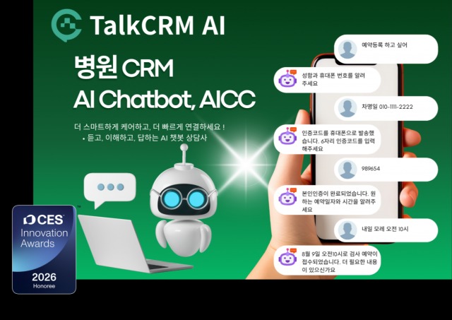 CES 혁신상은 미국소비자기술협회(CTA)가 매년 주최하는 권위 있는 시상식으로, 뛰어난 기술력과 디자인을 갖춘 제품을 선정해 시상한다. ‘TalkCRM AI’는 AI 기술을 의료 산업에 접목해 병원 운영 효율성을 극대화하고 환자 경험을 혁신한 공로를 인정받아 ‘인공지능’ 부문에서 수상의 영예를 안았다.