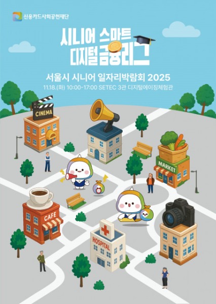신용카드사회공헌재단은 오는 11월 18일(화) SETEC(서울무역전시컨벤션센터, 학여울역)에서 열리는 ‘서울시 시니어 일자리박람회 2025’에 공동주관으로 참여해, 시니어의 디지털 금융 역량 강화를 위한 ‘스마트 디지털 금융 리그’ 캠페인을 운영한다.