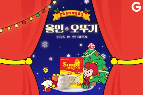 여기에 G마켓 단독 구성 상품을 선보인다. 신제품 ‘오뚜기 가뿐한끼 곤약밥 18개’를 G마켓에서 단독 선런칭한다. △겨울 한정판 산타 머그컵(산타컵스프 증정) △더핫열라면 4개입(더핫열라면 NFC 키링 증정) 등 사은품 증정 상품도 다양하다.
