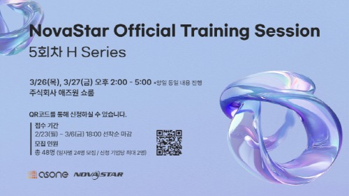 9년 연속 한국 공식 NovaStar 디스트리뷰터인 애즈원은 오는 3월 26일(목)과 27일(금) 양일간 개최하는 ‘NovaStar Official Training Session’의 참가자를 모집한다고 밝혔다. ‘NovaStar Official Training Session’은 올해로 다섯 번째 운영되는 교육 프로그램으로, 이번에 2026년 첫 트레이닝 세션이 진행된다.