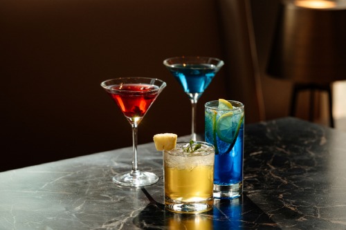 진 베이스의 히비스커스 네그로니 ‘레드(Red)’, 진 베이스의 자스민 비즈니즈 ‘옐로우(Yellow)’, 럼 베이스로 한 카모마일 모히토 ‘블루(Blue), 그리고 논 알콜의 스카이레몬 그린티 ‘스카이 블루(Sky Blue)’까지 취향에 맞게 즐길 수 있다.