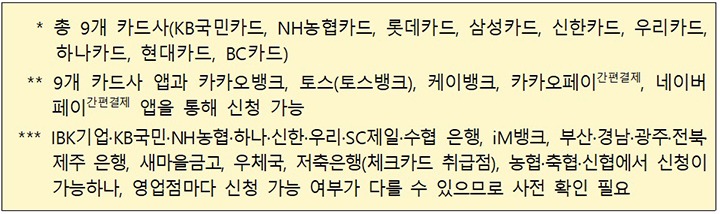 신청 방식은 온라인과 오프라인 모두 가능하다. 온라인 신청은 기간 내 24시간 운영되며, 오프라인 신청은 주소지 관할 읍면동 행정복지센터나 카드 연계 은행 영업점을 방문하면 된다. 지급 수단은 신용·체크카드, 선불카드, 지역사랑상품권 중 선택할 수 있다.