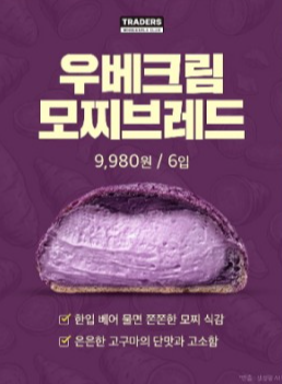 신세계푸드는 가성비 디저트 수요가 지속될 것으로 보고 관련 제품을 확대하고 있다. 지난 17일에는 동남아시아의 보라색 뿌리채소 우베를 활용한 ‘우베크림모찌브레드’를 트레이더스 베이커리에 출시했다. 우베 특유의 보라색 색감과 은은한 단맛, 쫄깃한 모찌 식감이 특징이며, 가격은 6입 기준 9980원이다.
