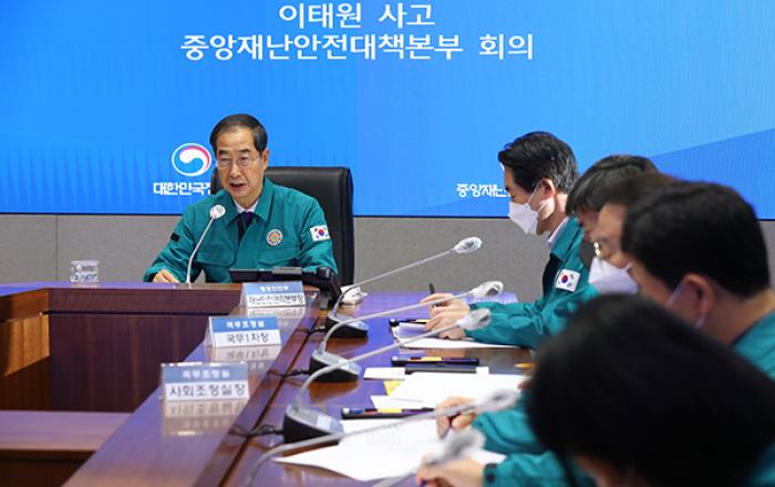 한덕수 국무총리는 14일 이태원 참사와 관련 “정부는 다시는 이러한 불행한 사고가 발생하지 않도록 특단의 대책을 마련하겠다”고 밝혔다. 한 총리는 이날 서울 세종로 정부서울청사에서 열린 이태원 사고 중앙재난안전대책본부 회의를 주재한 자리에서 “이번주부터 국가안전시스템 개편 범정부 TF, 경찰 대혁신 TF 등을 통해 주요 개선방안이 본격 논의된다”며 이