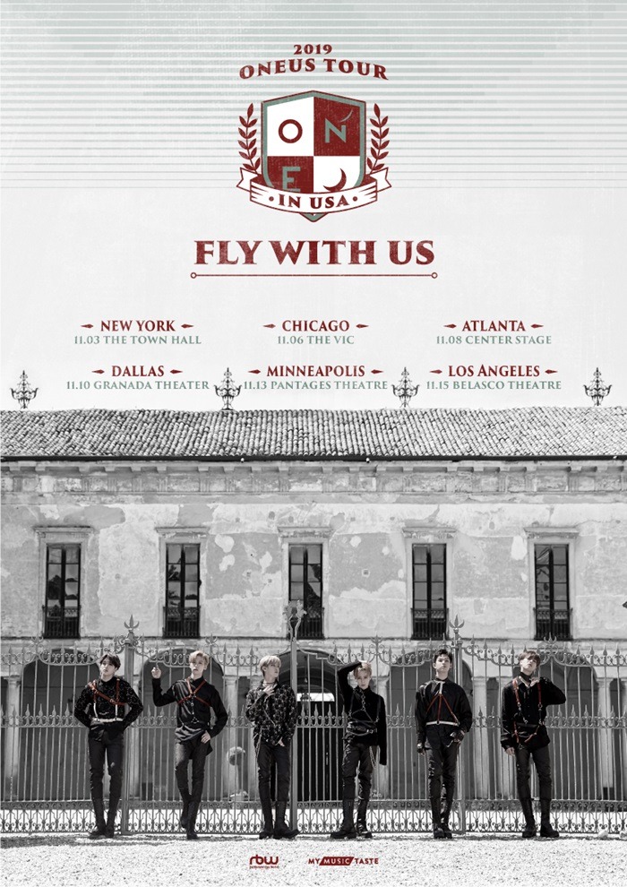 원어스는 오는 11월 첫 미주투어에 나선다. 원어스는 2019 ONEUS 'FLY WITH US' TOUR IN USA 를 통해 11월 3일 뉴욕을 시작으로 시카고 (11월 6일), 애틀랜타 (11월 8일), 댈러스 (11월 10일), 미니애폴리스 (11월 13일), 로스앤젤레스 (11월 15일)까지 총 6개 도시를 방문한다.