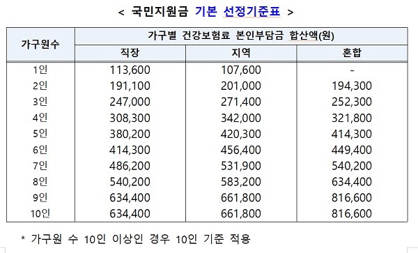 구체적으로 보면 홑벌이 4인 가구를 기준으로 하면 직장가입자는 30만8300원, 지역가입자는 34만2000원, 혼합가구는 32만18000원 이하인 경우 지원금을 받을 수 있다. 건강보험 미가입자인 의료 급여 수급자 등도 지원 대상에 포함된다.
