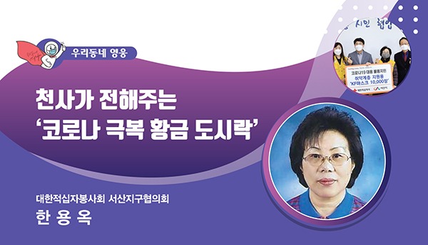 이러한 활동을 펼치고 있는 대한적십자봉사회 서산지구협의회 소속 한용옥 씨는 코로나19 장기화로 매출하락의 어려움을 겪고 있는 음식점 2곳에 도시락 제작을 의뢰하면서 시작되었다.