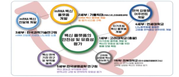 이 사업의 일환으로 mRNA백신 개발을 추진하게 되었으며, mRNA백신 플랫폼 및 유효성 평가기술 개발을 목표로 4년간(’21.6~’24, 총74.3억원) 연구를 진행한다.
