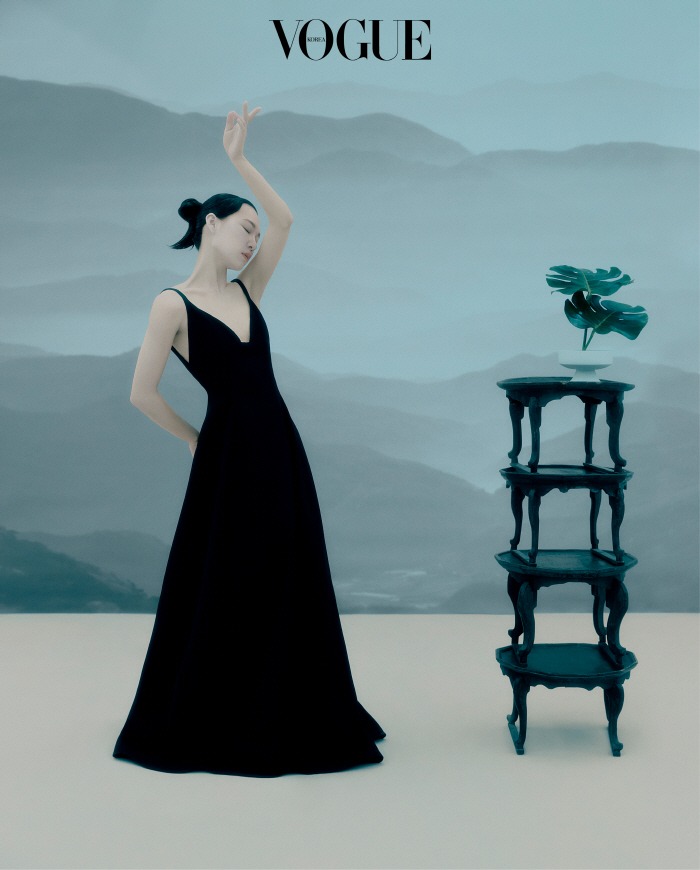 공개된 화보 속 한예리는 마 소재의 천 또는 수묵화 등을 배경으로 절제되면서도 유려한 몸짓과 함께 동양적인 아름다움을 완성해냈다. 특히 맑고 자연스러운 메이크업과 어우러지는 깊은 눈빛과 표정은 물론, 블랙과 화이트 등 독특한 무드의 리넨과 실크 드레스를 완벽히 소화해내며 물 흐르듯 감각적인 실루엣을 그려냈다. 다년간 무용수로서도 활약해 온 한예리는 특유의 단단하면서도 고유한 몸 선에 가뿐한 움직임을 더한 한국 무용 동작도 능숙하게 선보이며, 마치 손끝부터 발끝까지 혼이 담긴 듯한 강렬한 아우라로 현장을 압도했다.