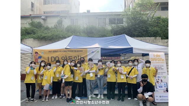 충청남도청소년진흥원 활동진흥센터는 센터가 지원한 ‘I DO 아두이노(이하 아두이노)’ 프로그램 참여에 참여한 청소년들이 7월 31일 천안시청소년수련관(관장 배영호)에서 코로나19 극복을 위한 ‘지역사회 청결 캠페인’을 실시했다고 3일 밝혔다.
