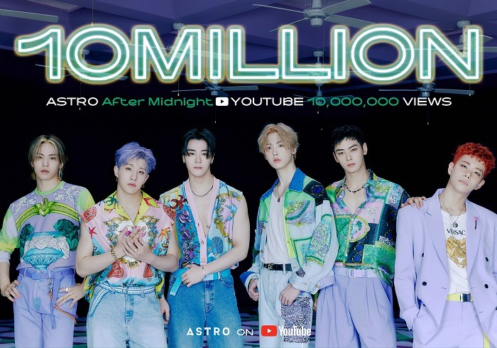 지난 2일 미니 8집 ‘SWITCH ON’(스위치 온)으로 서머킹의 귀환을 알린 아스트로(MJ, 진진, 차은우, 문빈, 라키, 윤산하)의 타이틀곡 ‘After Midnight’(애프터 미드나잇) 뮤직비디오가 1000만 뷰(4일 오전 4시 기준)를 돌파했다.