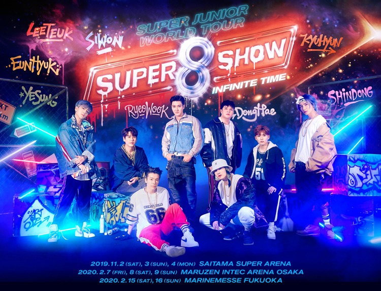 슈퍼주니어는 오는 11월 2~4일 총 3회에 걸쳐 일본 사이타마 현에 위치한 사이타마 슈퍼 아레나에서 ‘SUPER JUNIOR WORLD TOUR - SUPER SHOW 8 : INFINITE TIME in TOKYO’(슈퍼주니어 월드 투어 ? 슈퍼쇼 8 : 인피니트 타임 인 도쿄)를 개최해 팬들 곁을 찾는다.