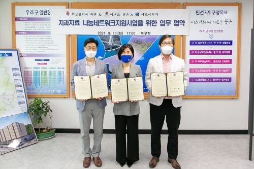 부산 북구는 지난 10일 이랜드재단, 아르미치과, 화명어린이치과와 함께 '치과치료 나눔네트워크 지원사업'을 위한 업무 협약을 체결했다고 밝혔다.
