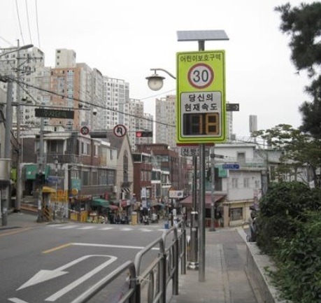 인천 동구가 교통약자인 어린이들의 안전한 보행 환경 조성을 위해 어린이보호구역에 '태양광 과속경보시스템'을 추가 설치한다.