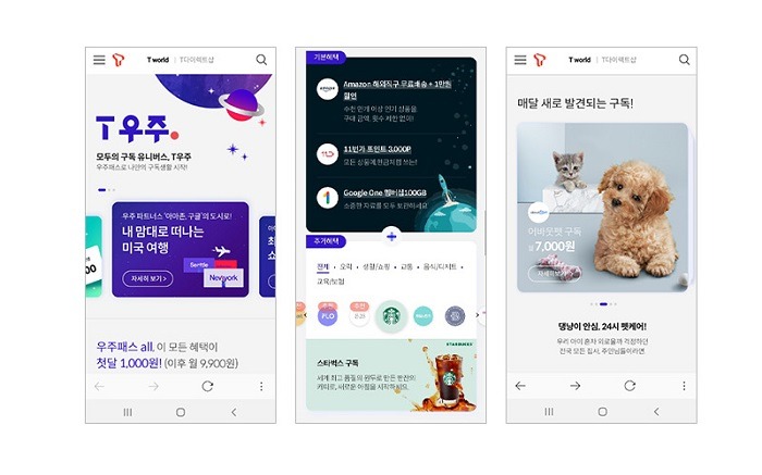 매달 약 1천 만 고객이 이용 중인 T월드 앱/웹 사이트 내 별도의 ‘T우주’ 탭을 신설하여 다양한 구독 상품 정보를 제공하고, 맞춤형 상품추천/탐색/가입/변경 등의 기능을 편리하게 이용할 수 있도록 개편했다. 우주패스의 이용방법 및 혜택 등 자세한 내용은 T월드 T우주 탭에서 확인 가능하다.
