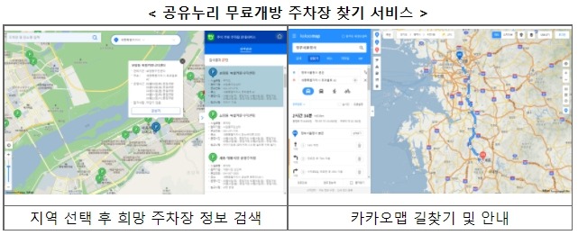 추석 연휴 기간 개방하는 무료주차장 정보는 인터넷「공유누리」누리집이나, 모바일 「공유누리」앱으로 접속해 확인할 수 있다.