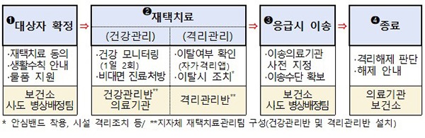 먼저 재택치료 대상자는 입원요인이 없는 70세 미만 무증상·경증 확진자로 확대한다. 다만 타인과의 접촉 차단이 어려워 감염에 취약한 주거 환경이나 앱 활용 및 의사소통이 어려운 경우는 제외된다.