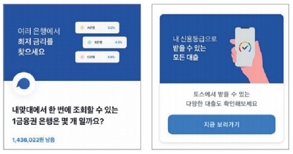 지난 3월 K은행에서 2100만원을 대출받은 30대 남성 A씨는 “은행이 문을 열지 않는 주말에도 신속하게 진행됐고, 여러 은행 금리가 한번에 조회되는 게 너무 편했다”며 “간편하게, 가장 좋은 금리와 좋은 기간으로 대출받을 수 있었다”고 만족감을 표했다.