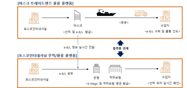 포스코인터내셔널이 이번에 도입한 방식은 종이가 필요 없는 디지털 방식이다. e-B/L은 글로벌 운송사 머스크가 개발한 물류 플랫폼 ‘트레이드렌즈’를 통해 발급됐다. 이후 포스코인터내셔널이 한국무역정보통신사(KTNET)와 협업한 ‘무역/물류 플랫폼’에서 우리은행과의 e-Nego와 DB손해보험의 적하보험 발행이 진행됐다.
