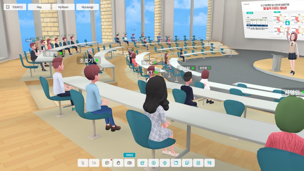 메타라운지는 고객의 필요에 따라 자체 공간과 기능도 추가로 제공해 기존 메타버스 플랫폼과 차별성을 뒀다. 고객 맞춤형 메타버스 구현이 가능하기 때문에 대학의 상징물이 반영된 메타버스 강의실, 지자체의 주민소통 행사 등 다양한 방식으로 사용 가능하다.