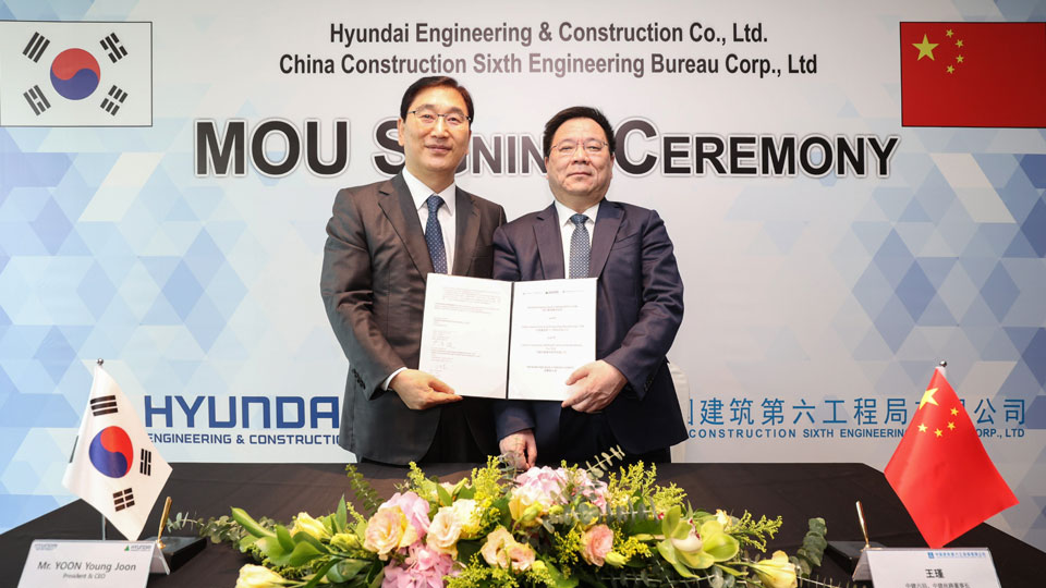 현대건설은 7일(현지시간) 싱가포르 만다린 오리엔탈 호텔에서 중국건축 제6공정국 유한공사(CCSEB, 이하 중국건축6국)와 전략적 협력을 위한 업무협약(MOU)을 체결했다고 밝혔다.