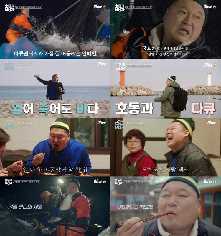 오늘(28일) 첫 방송되는 Olive ‘호동과 바다(연출 김관태, 곽지혜)’는 바다를 품고 있는 사람들과 바다가 품고 있는 보물을 찾으러 겨울 바다로 떠나는 사람 내음 푸드 다큐멘터리 프로그램이다. 특히, 방송 베테랑 강호동의 생애 첫 다큐멘터리 도전으로 많은 이들의 이목이 집중되고 있기도 하다.