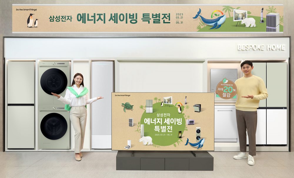 삼성전자가 지속가능한 일상을 위한 고효율 에너지 절감 가전과 환경을 생각하는 가전을 특별한 혜택으로 구매할 수 있는 ‘ 삼성전자 에너지 세이빙 특별전 ’ 을 진행한다 .