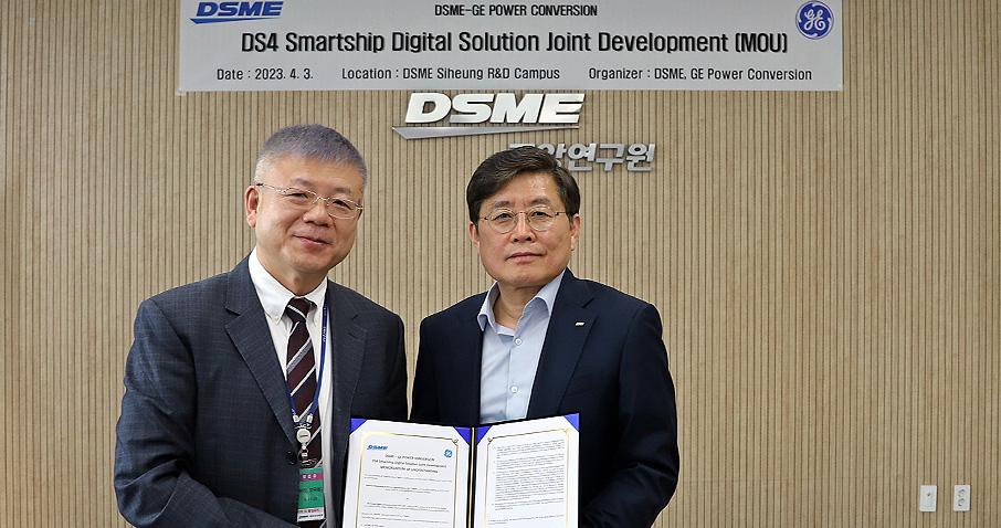 대우조선해양(대표이사 박두선)은 GE파워컨버전(GE Power Conversion)社와 ‘DS4스마트십 디지털 솔루션 공동 개발을 위한 양해각서(MOU)’를 체결했다고 4일 밝혔다. 이날 행사에는 대우조선해양 중앙연구원장 최동규 전무와 GE파워컨버전 토마스 진(Thomas Jin) 아시아 대표 및 GE파워컨버전 코리아 강종수 전무를 비롯한 양사 관계자 10여 명이 참석했다.