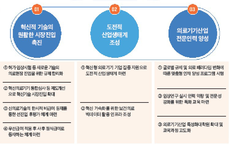 또한 새로운 기술의 한시적 품목분류, 임상시험 승인 간소화 등 새로운 기술이 원활하게 허가를 받을 수 있도록 관련 규제를 합리화한다.