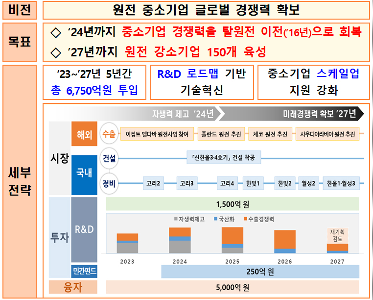 또 2024년부터는 시중은행과 협력해 250억원 규모의 ‘원전 중소기업 경쟁력 강화 펀드(가칭)’를 조성한다.