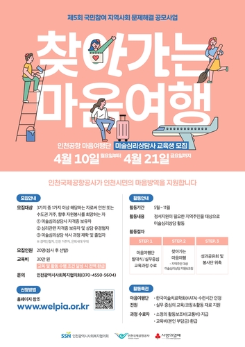 인천국제공항공사는 인천사회복지협의회와 지역주민 심리상담 프로그램인 '제3회 찾아가는 마음여행' 사업을 시행한다고 밝혔다.