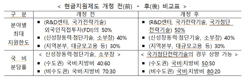 산업부는 우선 첨단산업과 관련된 양질의 외국인투자 유치를 확대하기 위해 현금지원제도 운영요령을 개정한다.