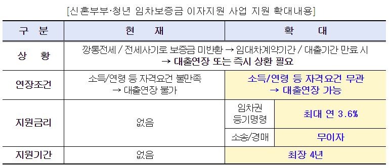 <임차보증금 이자지원 대상자 중 전세사기 피해자 대출상환 연장… 대출한도도 증액>