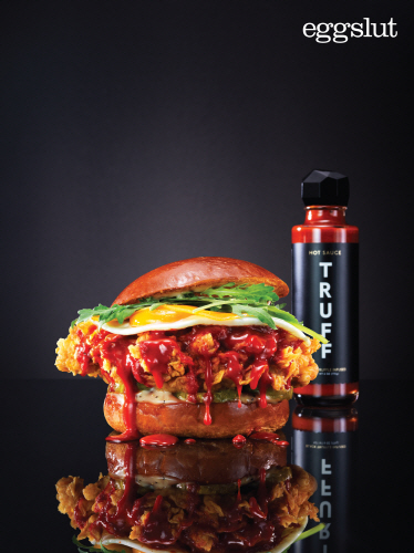 에그슬럿은 자유롭고 창의적인 브랜드 정신으로 SNS상에서 인기를 끈 미국 핫 소스 브랜드 트러프(Truff) 社와 국내 최초 헙업해 신메뉴를 선보인다.